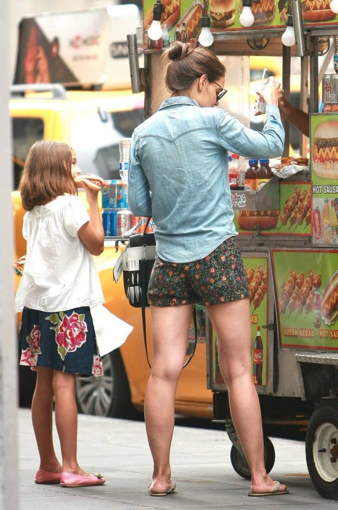 Katie Holmes takes Suri out for a fun Sunday in the Big Apple as the mother daughter duo are seen enjoying some quality time together. Katie and Suri first visit a hot dog stand where Suri got a hot dog and Katie grabbed a Diet Coke before the duo set of for the Museum of Modern Art.
